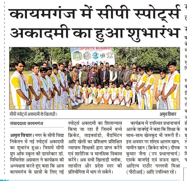 C. P. Vidya Niketan organized today its most awaited INTER HOUSE SWIMMING COMPETITION. Accomplished swimmers from all the houses were ready today for the competition. The Competition was inaugurated by Chief Guest Mr. Yaduvansh Kumar Verma, SDM Kaimganj and other guests by lighting the lamp. The students competed in the following categories: A)25 mtr boys free style B)25 mtr girls free style C)50 mtr boys free style D)Relay race swimming All the participants were trained by our PET Mr. Saud H. Khan and Mr. Raghvendra Singh. They were taken care of by Mr. Aditya Rathore and Miss Pallavi Mishra (PETs). The Chief Guest, SDM Kaimganj in his speech praised the management for this kind of initiatives in such a remote school. Manager, C.P. Group of Schools asked the students to be more active in all the activities pertaining to physical labour, apart from mental exercises. Director, Dr(Mrs.)Mithlesh Agarwal also praised the participants saying that a healthy mind resides in a healthy body only. Hence, every student should participate in games and sports.The Compere of the program was Mrs. Neelam Trivedi. Principal Mr. R. K. Bajpai Congratulated all the house In-Charges and all the participants for this wonderful feat. Vice-principal Mr. Deepak kumar Jena, along with the four House In-Charges and other teachers was present there and actively participated in all the proceedings there. In a nutshell, it was a very beautiful function organized in a planned manner.